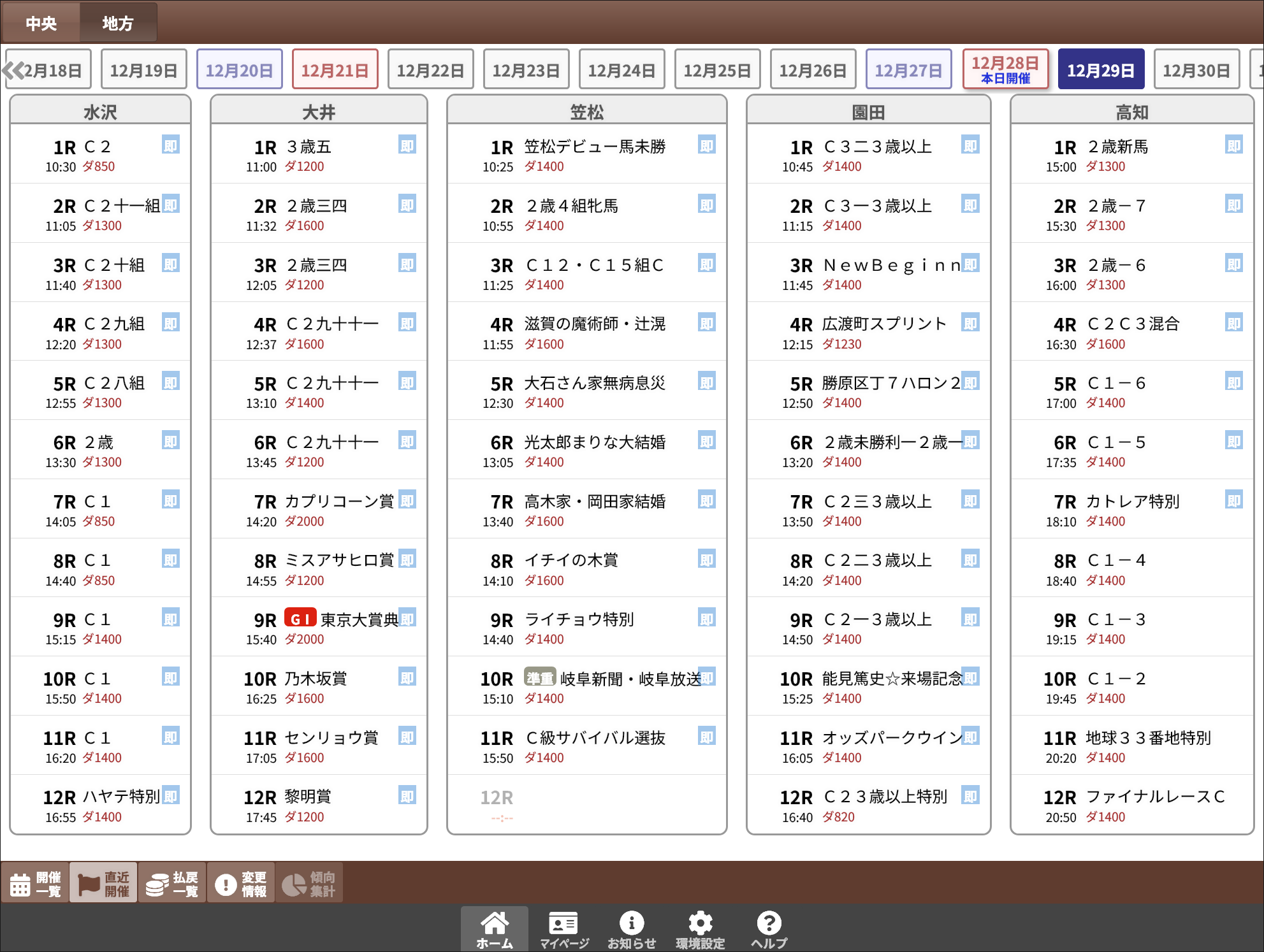 最新バージョンは地方競馬(帯広を除く)に対応しております。【ホーム】タブの画面上部で「中央/地方」の切り替えが可能です。